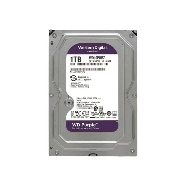 هارد ۱ ترابایت بنفش وسترن دیجیتال (Western Digital Purple 1TB WD10PURZ) یکی از محبوبترین و قابلاعتمادترین ذخیرهسازهای اطلاعات مخصوص سیستمهای نظارتی و دوربینهای مدار بسته است. این هارد دیسک از سری معروف Purple شرکت Western Digital بوده و بهطور ویژه برای کارکرد ۲۴ ساعته و عملیات ضبط و پخش مداوم دادهها طراحی شده است. اگر به دنبال یک هارد با عملکرد پایدار، عمر طولانی و کیفیت ساخت بالا هستید، هارد یک ترابایت بنفش انتخابی مطمئن برای شما خواهد بود.